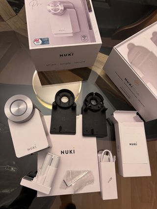 Cerradura inteligente Nuki 3 Pro con conectividad Wi-Fi integrada. Permite el control de acceso de forma remota. Smart lock, Nuki 3 Pro, lleva el Wifi para que abrir la puerta a distancia incorporado en la propia cerradura, usada durante 1 año en casa molinera, y dos años sin uso, está con todos sus accesorios, batería en buen estado, falta la pegatina (ya que se usó) del plástico B pero con una pegatina 3M de doble cara funcionaría igual. Si tienes cualquier duda o quieres más fotos contacta sin compromiso ninguno. Se valoran las ofertas del producto, en las dos últimas fotos se ve bien que funciona perfectamente