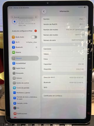 iPad Air de 4a generación en color plata con 256 GB de almacenamiento. REACONDICIONADO. SIN HUELLA DE DESBLOQUEO - Modelo: iPad Air (4.a generación) - Capacidad: 256 GB Ha sido revisado y ha superado con éxito los puntos de control de nuestro servicio técnico. 🏪 Visítanos en estrenamovilbarato.es 💲Precio definitivo, no sujeto a negociación 🧾 Se entrega con factura que incluye la garantía de tres meses 🏦 Se aceptan múltiples formas de pago, transferencia inmediata, tarjeta, Apple Pay, monedero Wallapop, bizum 📋 Vendedor profesional, que opera a través de empresa 📦 Se realizan envíos. Nacional e internacional
