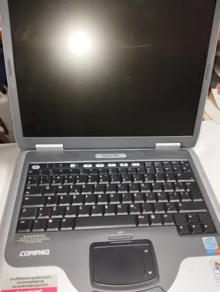 Portátil Compaq Presario 2500 en color negro y plateado. - Pantalla de 15 pulgadas. - Teclado QWERTY español. - Incluye touchpad. No incluye cargador ni adaptador