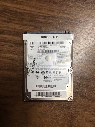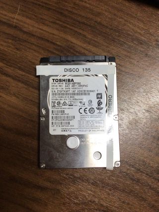 Disco duro interno Toshiba de 320GB, formato 2.5 pulgadas. - Modelo: MK3276GSX - Voltaje: DC+5V 1.0A - Número de serie: Y105S64QS P73 EC.A - Fabricado en China