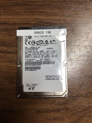 Disco duro interno de 2.5 pulgadas con capacidad de 160GB. - Modelo: HTS54501689A300 - Interfaz: SATA 3.0Gb/s - Velocidad de rotación: 5400 RPM - Fabricado en Tailandia