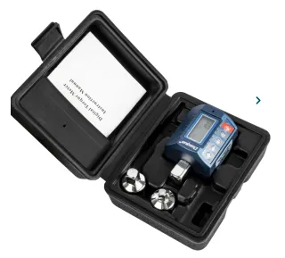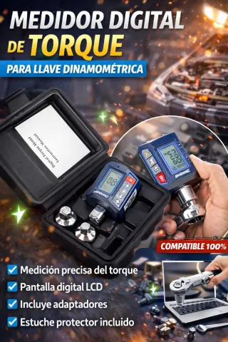 Medidor digital de torque para llave dinamométrica, ideal para mediciones precisas. - Pantalla digital LCD. - Incluye adaptadores. - Estuche protector incluido.