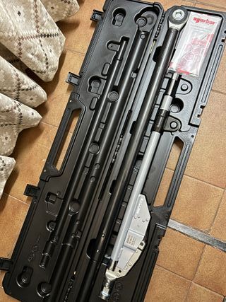 No negociable. Llave dinamométrica con un rango de 40-210 Nm, sin uso. Incluye maletín y accesorios. - Extensor 125 mm - Vasos de 17, 19 y 21 mm - Documento de calibración