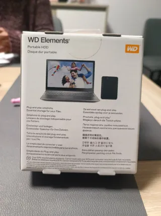 Disco duro externo portátil WD Elements de 1TB. Ideal para almacenar tus archivos y copias de seguridad. - Capacidad: 1 TB - Tipo: HDD Portátil - Marca: WD - Garantía limitada de 2 años