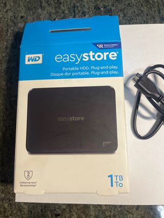 Disco duro externo portátil Easystore de 1TB. - Capacidad de 1TB. - Diseño portátil y compacto. - Conexión Plug-and-play. - Incluye cable de conexión.