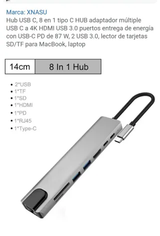 Hub USB C XNASU 8 en 1 Adaptador Múltiple