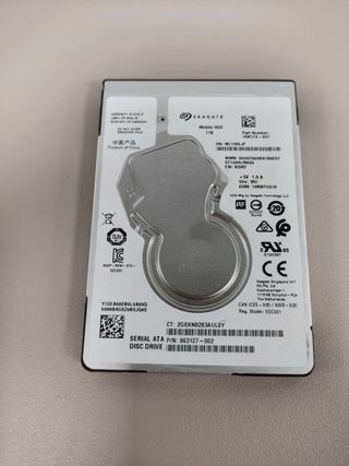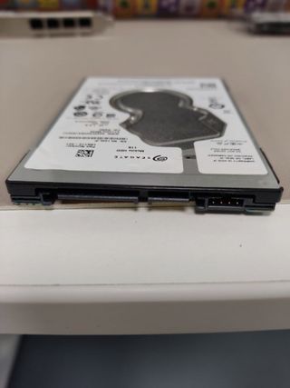Disco duro interno de 1 TB de capacidad. - Interfaz SATA 6 Gb/s. - Modelo: ST1000LM035. - Fabricado en mayo de 2018. - Origen: China.