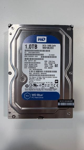 Vendo disco duro de 1TB de la marca WD Blue. Está en buenas condiciones. - Capacidad de 1TB. - Modelo WD10EZEX. - Interfaz SATA. Se puede hacer descuento por los 6.