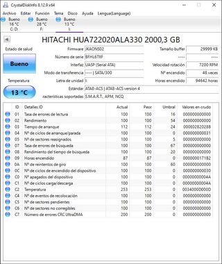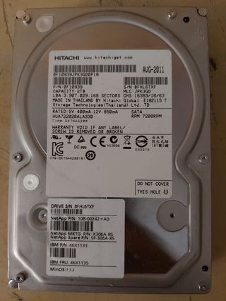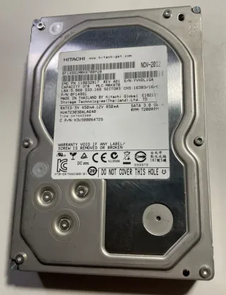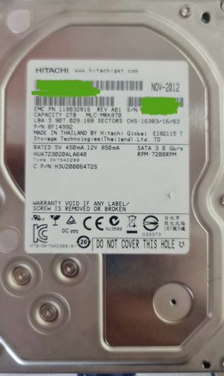 Disco duro interno para PC Hitachi de 2TB de capacidad. Funciona corrrectamente (ver informe crystaldisk) - Capacidad: 2TB - Interfaz: SATA - Velocidad: 7200 RPM - Modelo: HUA722020ALA330