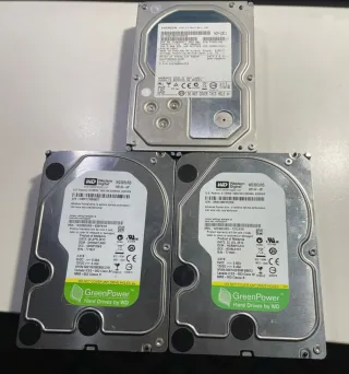 Se venden 7 discos (juntos o sueltos): - 2x 2TB WD Caviar Green - 1x 2TB WD Green - 2x 1TB WD Green - 1x 2TB WD Purple (Vigilancia) - 1x 2TB Seagate SkyHawk Estado y Privacidad: - Salud "Bueno" en CrystalDiskInfo. - Borrado seguro con KillDisk (One Pass Zeros). - Sin formato, listos para inicializar. Transparencia: Como tienen distinto uso, dime cuál te interesa y te envío su captura de CrystalDiskInfo (horas y salud) antes de la compra. Precios: De 25€ a 55€ según uso.