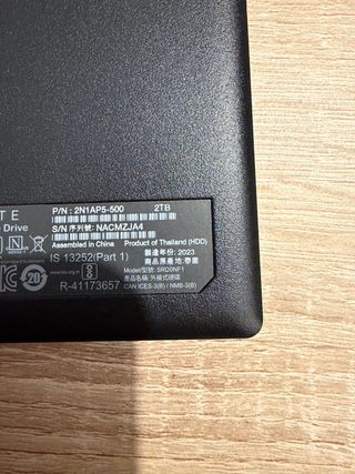 Disco duro externo Toshiba de 2TB, modelo HDWD120. 2 unidades el precio es para las dos - Capacidad: 2000,3 GB - Interfaz: UASP (Serial ATA) - Velocidad de rotación: 7200 RPM - Firmware: MX40ACF0 - Número de serie: Z724GH4AS