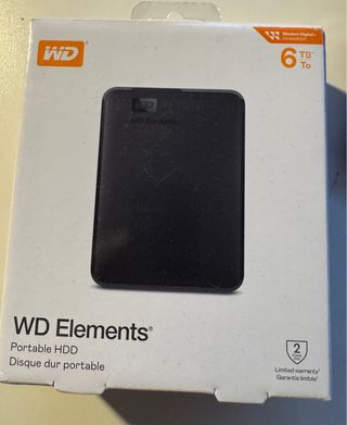Se vende lote de seis discos duros portátiles WD Elements. - Tres discos de 6 TB. - Tres discos de 2 TB. - Capacidad total de 24 TB.