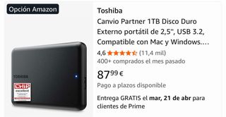 • De media, comprar Disco duro 2 tb en Wallapop es un 44% más barato que comprar este tipo de producto nuevo
