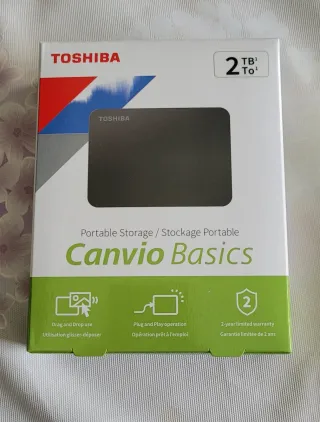 Disco duro externo portátil Toshiba Canvio Basics de 2TB. Ideal para almacenar tus archivos y copias de seguridad. - Capacidad de 2TB. - Diseño compacto y ligero. - Conexión USB. Hago envíos.