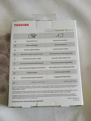 Disco duro externo portátil Toshiba Canvio Basics de 1TB de capacidad. De 2,5 pulgadas con una interfaz USB 3.0 para una transferencia de datos rápida y fácil configuración (compatible con USB 2.0). Diseño compacto y ligero. Fácil de transportar. No requiere una fuente de eliminación externa, ya que se conecta directamente al ordenador a través del cable USB. Nuevo, sin abrir. Tengo 3 unidades