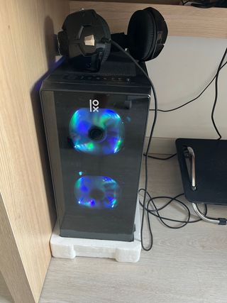 Prácticamente sin uso, en perfecto estado Sobremesa Primux IOX Gaming PC870, Ryzen 5 pro 4650g, 16GB, 480GB SSD + 1TB HDD, FreeDOS / Con Sistema Operativo Caja semitorre con frontal y lateral transparentes Placa Base A520M PRO Memoria RAM a 3200 MHz con disipador térmico RGB Kit de 3 ventiladores RGB controlados por mando a distancia Fuente ATX 600W PFC Activo Velocidad máxima del procesador: Hasta 4,2GHz Memoria Ram 16 GB Disco duro Tipo: HDD Capacidad: 2 TB Tipo: SSD Capacidad: 480 GB Tipo de tarjeta AMD Procesador gráfico Radeon Vega