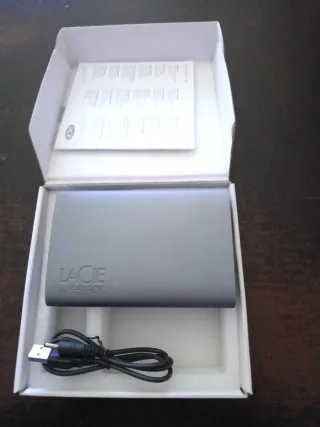 Disco duro externo LaCie de 500GB. Diseño elegante y compacto. - Color gris. - Incluye cable USB.