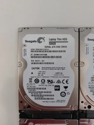 Se venden 6 discos duros SATA de 500GB, de las marcas HGST y Toshiba. De 2,5 pulgadas para ordenador portátil o miniPC. Verificados con CrystalDiskInfo y formateados.