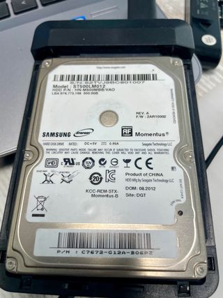 Disco duro interno Samsung Momentus 500GB. - Modelo: ST500LM012 - Capacidad: 500 GB - Interfaz: SATA - Fabricado por Seagate Technology LLC - Fecha de fabricación: 08.2012
