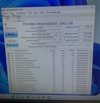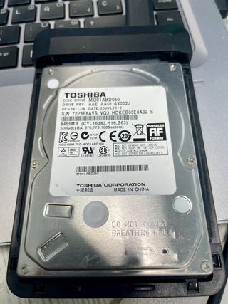 Disco duro interno Toshiba de 500GB. - Modelo: MQ01ABD050 - Capacidad: 500GB (976,773,168 Sectors) - Interfaz: SATA - Fecha de fabricación: 25JUL2012 - Fabricado en China