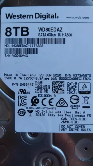 Disco duro externo Western Digital de 8TB. El disco duro no funciona, lo conectas y no lo reconoce Windows ni cristal disk , se vende para piezas o para realizar alguna reparación Hago envíos por wallapop, no se admiten devoluciones Solo gente seria, abstenerse mareantes y curiosos - Modelo: WD80EDAZ - Interfaz: SATA 6Gb/s - Capacidad: 8TB - Fabricado en Tailandia - Fecha de fabricación: 24 FEB 2021