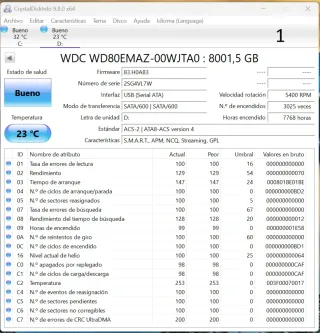 Disco duro externo WESTERN DIGITAL RED 8TB de gran capacidad para almacenar todos tus archivos. WDC WD80EMAZ-00WJTA0 de 3.5" 5400rpm. La caja tiene algunas marquitas del uso, pero está en buen estado y no tiene muchas horas de uso, apenas 9500h cuando estos discos aguantan más de 50.000h de uso. Tiene ranura para candado keystone. Con cable USB y fuente de alimentación. Hago envíos, cualquier consulta es bienvenida. Puedo entregar en toda la A-6 en la ruta Ponferrada-Madrid.