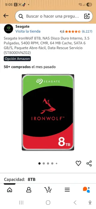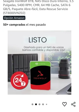 HDD SEAGATE NAS 3.5 8TB 7200RPM 256MB SATA3 IRONWOLF ref ST8000NT001 Recertificado precintado de fábrica Mas discos duros en mi perfil