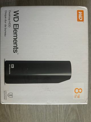 Disco duro externo de gran capacidad para almacenar todos tus archivos importantes. Su diseño es elegante y moderno. - Capacidad: 8TB - Color: Negro - Marca: WD Elements