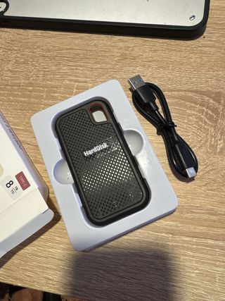 600 €/ud. Por separado Disco de estado sólido portátil SanDisk Extreme de 8 TB. Diseñado para un almacenamiento de alta velocidad. - Capacidad: 8 TB - Velocidad de lectura: hasta 1050 MB/s - Velocidad de escritura: hasta 1000 MB/s - Resistente al agua