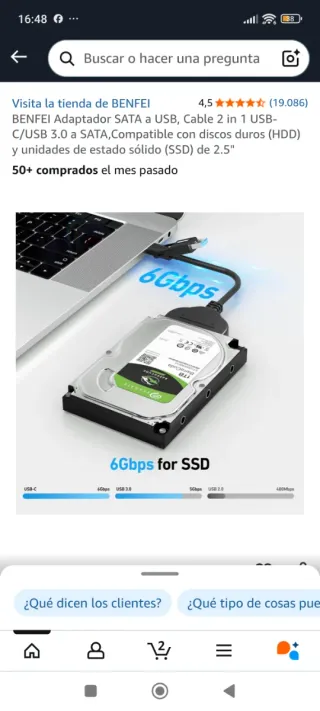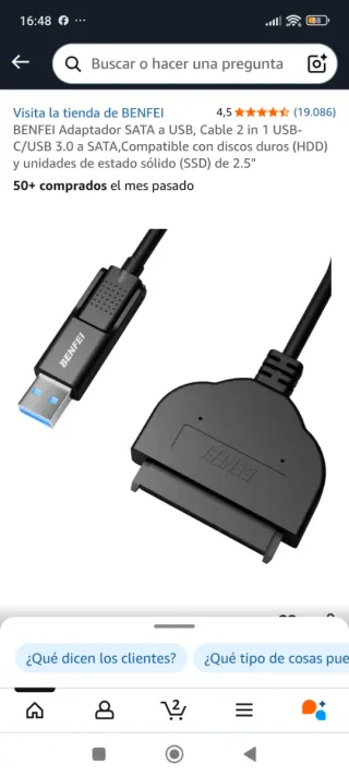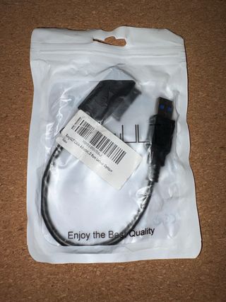 PRODUCTO NUEVO. A ESTRENAR. Cable adaptador USB 3.0 Tipo C a SATA. Este cable es útil para realizar copias de seguridad o clonaciones de discos duros de 2,5" a través de un puerto USB. O simplemente para acceder desde un puerto USB a un disco SATA de 2,5", sea mecánico o SSD. Persona/Envíos.