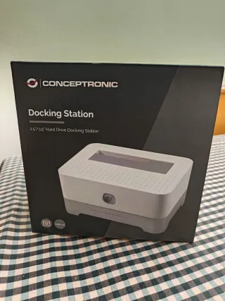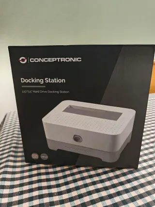 Docking station lector para discos duros CONCEPTRONIC en buen estado. Incluye la base, el cable de alimentación y los cables SATA y USB. Es perfecta para conectar discos duros de 2.5" o 3.5" a tu ordenador. - Permite conectar discos duros de 2.5" y 3.5". - Incluye cables SATA y USB. - Funciona con eSATA y USB.