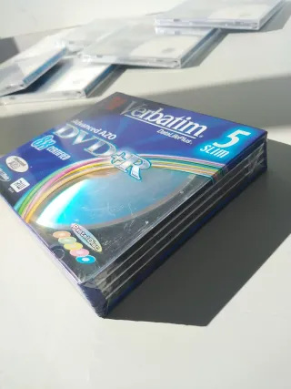Pack de discos DVD+R grabables de Verbatim. Incluye una caja de 5 discos slim y varios discos sueltos. - Velocidad de grabación 16x. - Tecnología Advanced AZO. - Capacidad de 4.7GB / 120min.