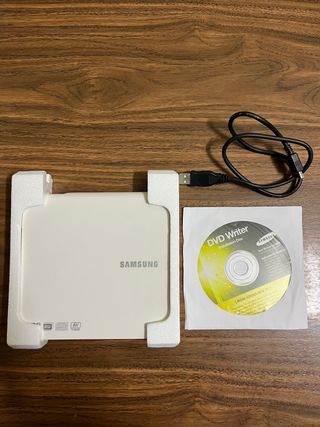 Vendo grabadora de DVD externa de la marca SAMSUMG en formato slim. Está nueva, sólo usada 1 vez para comprobar que funcionaba correctamente. Viene con su plástico protector, caja original, cable usb y manual de instrucciones. Compatible con MAC y WINDOWS.