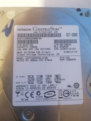 Disco duro de 250Gb de la marca Hitachi. En perfecto estado. Para completar tu pc retro. Mira mi perfil para ver más artículos retro y vintage. #Informática #Hardware #PlayStation #Asus