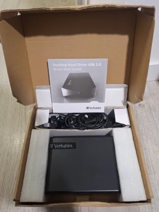 Disco duro externo Verbatim de 1TB, ideal para almacenar tus archivos importantes. Viene con su cable y adaptador de corriente. - Capacidad de 1TB. - Diseño compacto y elegante. - Incluye cable USB y adaptador de corriente. Ideal para almacenar.