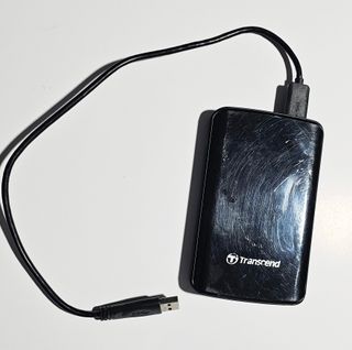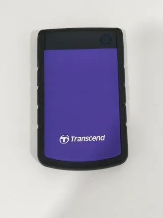 Disco duro externo de color negro. : Vendo disco duro externo de 320GB marca Transcend. Funciona correctamente, ideal para guardar archivos, fotos o copias de seguridad. Conexión USB, fácil de usar en ordenador o portátil. Capacidad: 320GB Tipo: Disco duro externo Estado: nuevo Entrega en mano o envío.