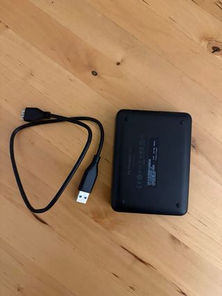 Disco duro portátil sin conexión a red Capacidad de 1TB El disco es de tipo mecánico de 2,5" Conector Micro B USB C 3,0 Externamente no está en buen estado pero funciona perfectamente