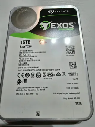 Disco duro externo Seagate Exos de 16TB, modelo X16 precio por unidad. dispongo de 4 discos. - Capacidad: 16TB - Modelo: Exos X16 - Número de parte: 2KK103-003 - Fabricado en Tailandia - Fecha de fabricación: 11 FEB 2021 - Interfaz: SATA
