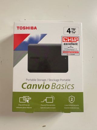 Disco duro externo Toshiba Canvio Basics de 4TB. Ideal para almacenamiento portátil. Nuevo. Original. No negociable - Capacidad de 4 TB. - Diseño compacto y ligero. - Conexión USB 3.0. - Garantía limitada de 2 años.