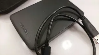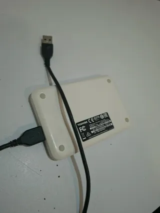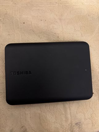 Disco duro externo portátil de 1TB. Diseño elegante y compacto, ideal para llevar tus archivos a donde necesites. La ultima vez que lo usé funcionaba, no tengo el cable. La carcasa tiene pocas marcas de uso. No devoluciones, se vende tal cual. - Capacidad de 1TB. - Marca Toshiba.