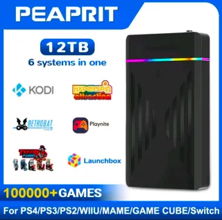 Disco duro externo Peaprit de 12TB con 6 sistemas integrados y más de 100.000 juegos. Regalo de 2 mandos Gamesir T4 nova Lite - Capacidad: 12TB. Tan solo 60 horas de uso - Sistemas incluidos: KODI, Hyperspin, Retrobat, Playnite, Teknoparrot, Launchbox - Compatible con: PS4, PS3, PS2, WiiU, MAME, Game Cube, Switch