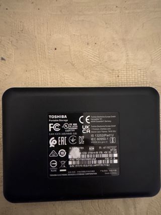 Disco duro externo Toshiba de 1TB. Ideal para almacenar tus archivos y copias de seguridad. - Estado: perfecto, bien cuidado con su funda propia. - Capacidad: 1TB - Tamaño: 2.5 pulgadas - Horas de uso: 559 (se puede ver en la ultima captura de Crystal disk info). - Sólo utilizado para copias de seguridad ocasionales, lo reemplazo por uno de más capacidad. No negociable.