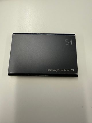 Disco duro externo Samsung T7 con una capacidad de 2TB. Su diseño es compacto y elegante, ideal para llevar tus archivos a todas partes. - Capacidad: 2TB - Modelo: T7