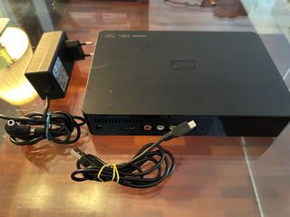 Disco duro externo de la marca WD. Incluye adaptador de corriente y cable USB. - Diseño compacto y elegante. - Puertos traseros: HDMI, USB, Audio RCA.