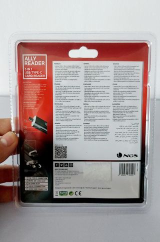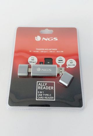 Lector de tarjetas NGS Ally 5 en 1, nuevo. Es un lector de tarjetas por USB, conexión tipo C, micro usb y usb 2.0 - Compatible con SD y microSD. - Transferencia de datos bidireccional. - Diseño compacto.