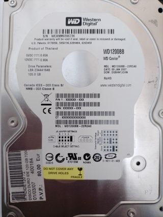 DISCO DURO DE 120 GB. WESTERN DIGITAL. SIN BORRAR CONTENIDO.