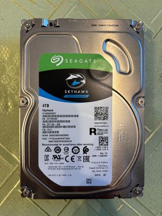 Disco duro interno Seagate SkyHawk de 4TB, diseñado para funcionar perfectamente 24 horas / 7 días, y que admite cargas de trabajo masivas (NAS, grabación de video, etc.) El disco duro esta en perfectístimo estado. Lo vendo sin apenas uso, por abandono de proyecto personal para montar un NAS.