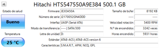 Se vende disco duro de 2.5'' con 500GB de capacidad en buen estado. Modelo: HITACHI HTS547550A9E384 Se entrega formateado y testeado. Se hacen envíos a toda España.