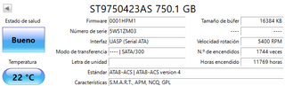 Se vende disco duro de 2.5'' con 750GB de capacidad en buen estado. Modelo: SEAGATE ST9750423AS Se entrega formateado y testeado. Se hacen envíos a toda España.