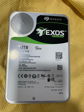 Disco duro de 12TB de la línea Exos X16 de Seagate, ideal para servidores y NAS. - Capacidad: 12TB - Modelo: Exos X16 - Interfaz: SATA - Número de parte: 2MV103-002 - WWN: 5000C500C89FD55B - PSID: N732SQPG5G689N1G0G9KMCV3NN6BUY7W - Fabricado en Tailandia - Fecha de fabricación: 18JAN2021